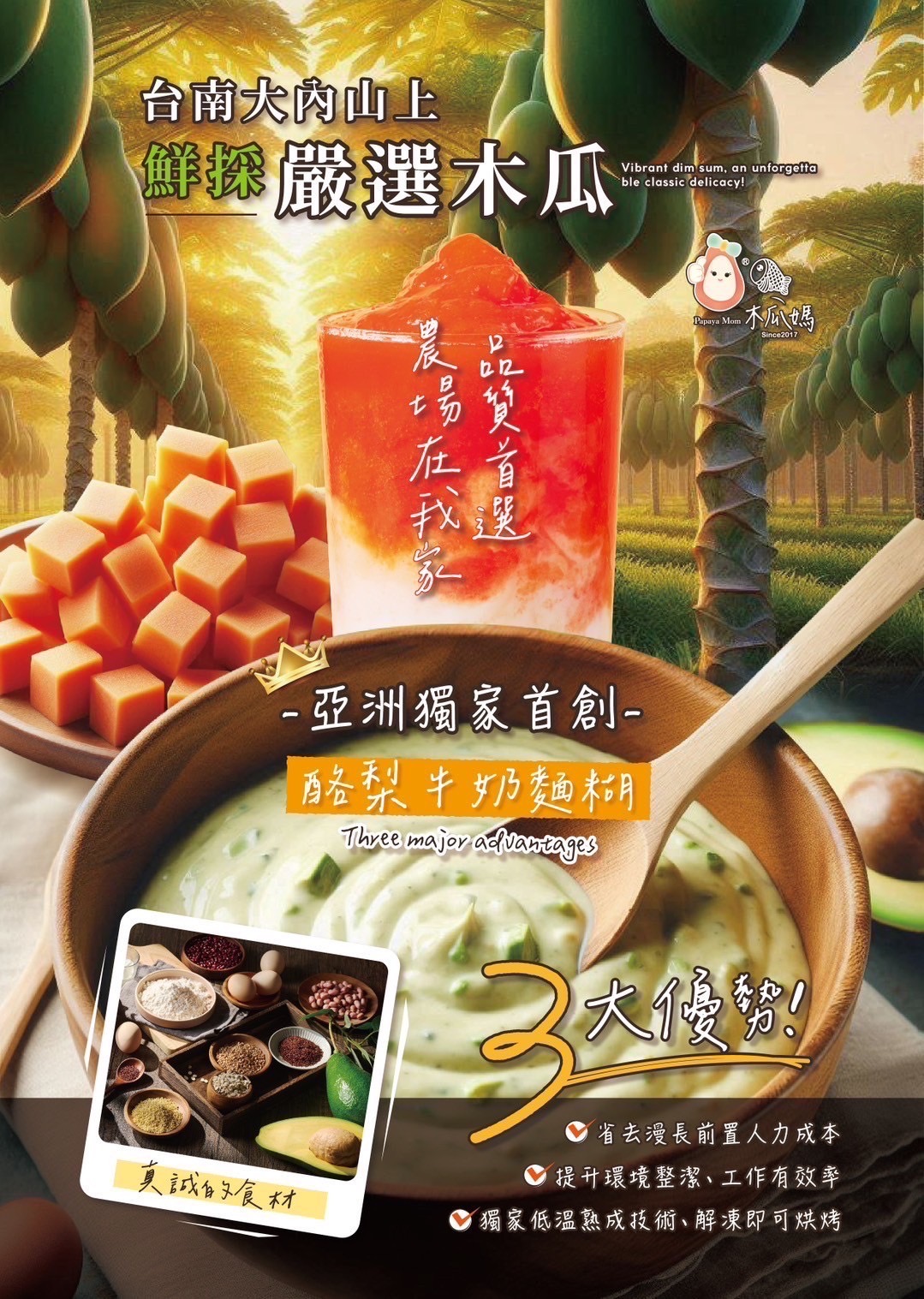人稱「木瓜媽」的吳佩俞,從彰化嫁來台南,因為知道長輩的木瓜園 木瓜品質好.便開始想做點小生意 分擔家計。漂亮的果園 由夫家的三兄弟幫忙長輩打理 也因為是自家嚴格篩選 成為店裡木瓜牛奶好喝的來源。因緣際會下 承接了朋友的烤台,讓原先對烘焙就充滿熱愛的吳佩俞開啟了的研發之路。不只在外皮上耗時研發,連口味也是箇中滋味,不論是波霸奶酪的濃郁奶香,還是麻糬可可的柔軟香濃,起司奶酪的鹹甜交融,每一種口味都讓顧客感到驚豔擁有產地到餐桌的優勢,確保了木瓜的品質。雖然目前將心力著重在店內,但總會遇到許多人想前來取經。一句句由衷的感謝 是吳佩俞道不盡的感恩之心 開店做生意 跟多數人一樣 沒有捷徑 .而一路上顧客的支持 長輩的支持 也將帶領著這一家人 繼續前行。